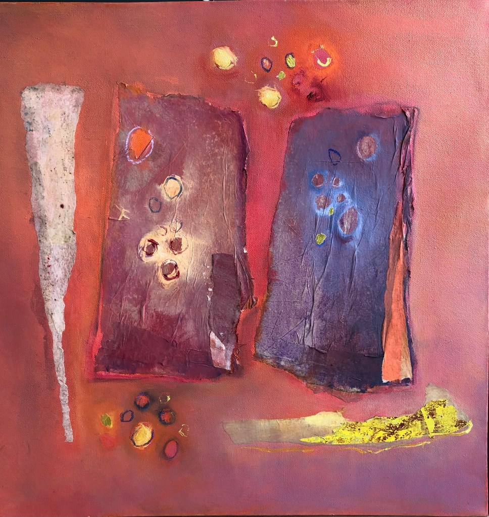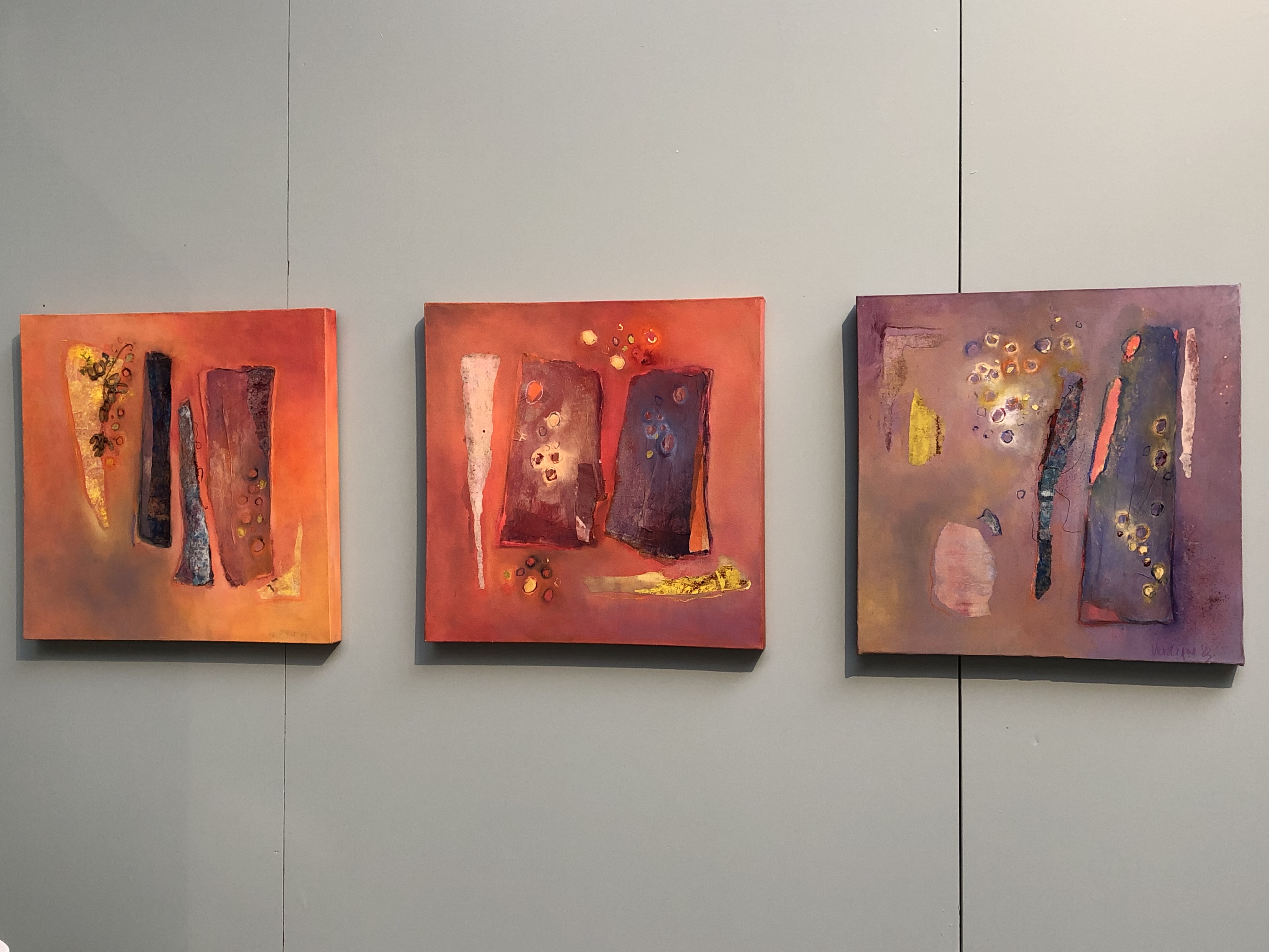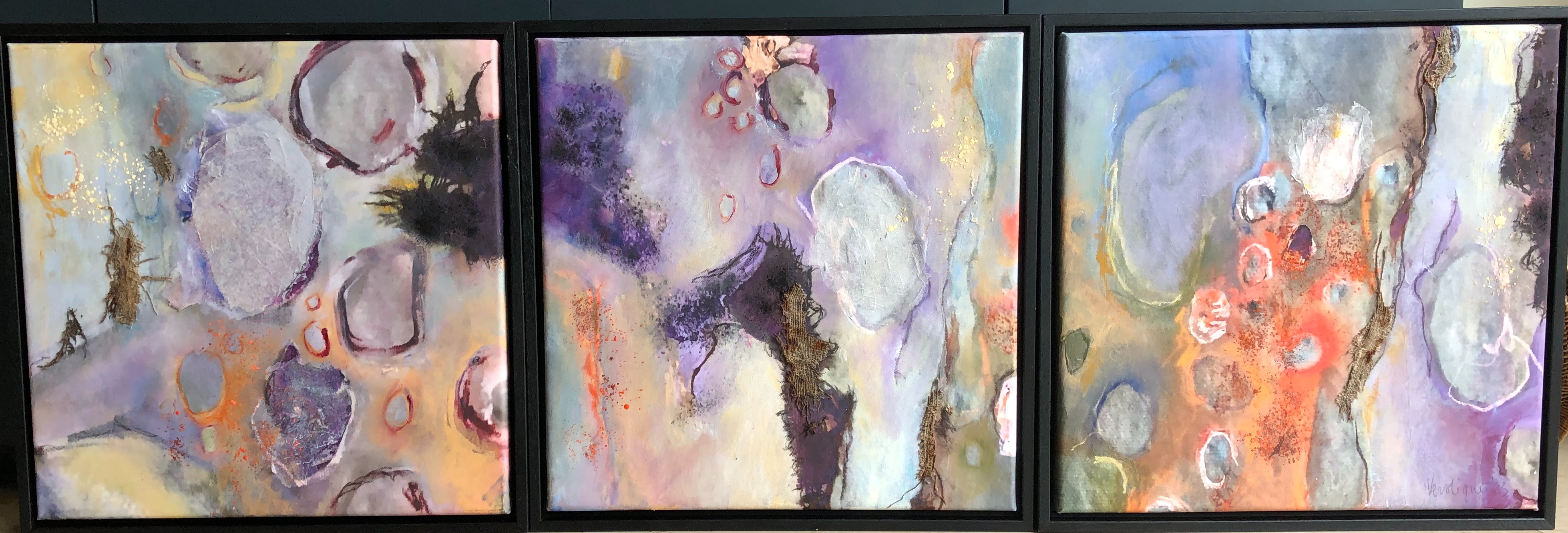 Vloeibaar (drieluik), 2023, 40x40cm, mixed media op canvasprint